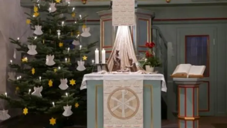 Die Einrichtung des Altarraums wurde "evangelisch": Über dem Altartisch, an dem sich die Gemeinde zum Abendmahl versammelt, befindet sich die Kanzel. Die Verkündigung des Evangeliums rückt damit nicht nur theologisch sondern auch optisch ins Zentrum. Darüber erhebt sich die Orgelempore mit der Orgel. Sie lässt das Lob Gottes erklingen, das zum Himmel steigt.
