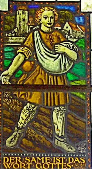 1928 erfolgte eine grundlegende Renovierung der Kirche, bei der neue Bänke und eine Holzwand zur Sakristei angeschafft wurden, dazu ein neuer Ofen. Im Altarraum wurden zwei bleiverglaste Motivfenster eingebaut. Das Fenster auf der Nordseite trägt die Inschrift: "Der Same ist das Wort Gottes." Abgebildet ist ein Sämann, der die Saat auf den Acker ausstreut. Im Hintergrund sind die Eppenröder Kirche und das Pfarrhaus zu sehen. Das gegenüberliegende Fenster auf der Südseite bildet eine Schnitterin ab, die mit der Sichel das Getreide erntet. Darunter steht zu lesen: "Unser tägliches Brot gib uns heute." Der Mensch lebt nicht vom Brot allein. Er braucht beides zum Leben: Brot und Gottes Wort.